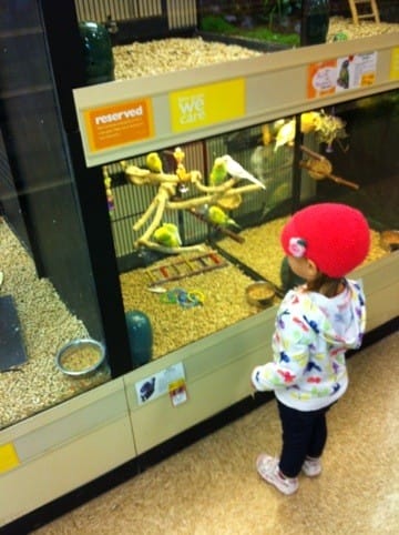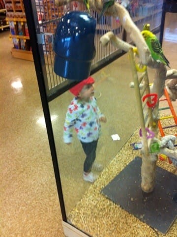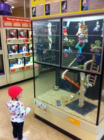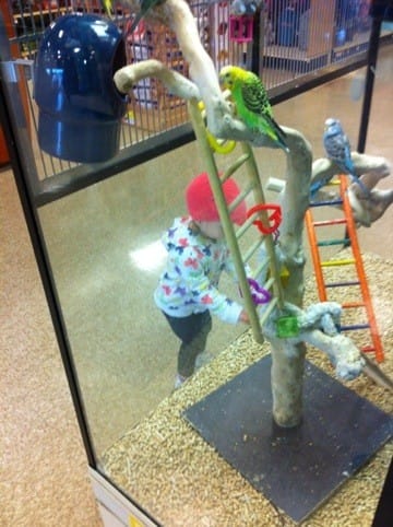 Mommy & I had to go to PetSmart to get cat food. I enjoyed myself, running through the aisles & playing with the stuffed dog toys. But I especially liked visiting the birds. Unfortunately, mommy said daddy will never let me get a bird – no matter how cute I am!