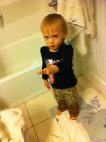 I stepped right into the tub with my clothes on. Mommy almost had a heart attack. But she recovered quickly, and decided to take my picture.