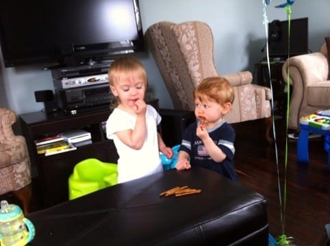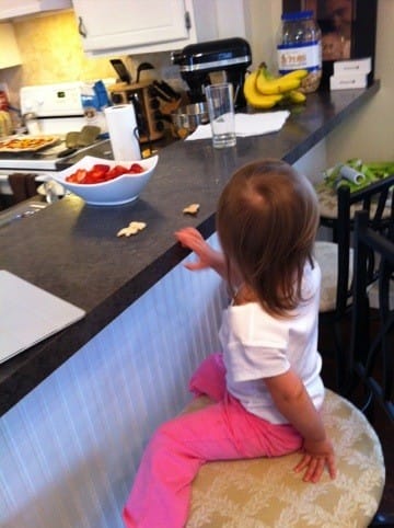 I especially liked sitting up at the high counter & eating strawberries and animal crackers.