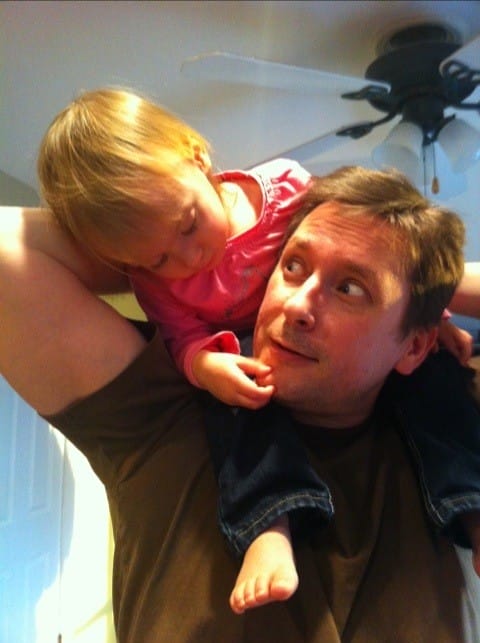 He likes me, so he lets me climb on him. This is fun – I like to be up high!