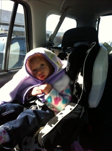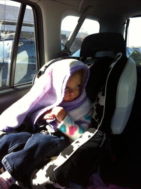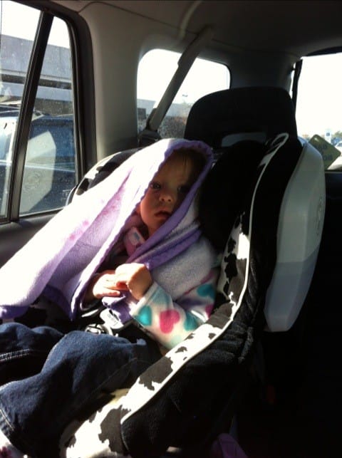 The sun hurts my eyes. Since I’m really not good about wearing my sunglasses, and I pulled the sun shade off my window, mommy gave me my blanket to use.