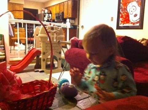 Well, the Easter bunny has been here, so I found some hidden eggs. And I got a stroller so I can push around my stuffed animals. Not many kids get to have Easter fun at 3am. And I seem to be feeling better now…