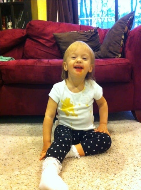 Mommy decided to have a Popsicle after dinner. I decided to steal it from her, even though I already had ice cream. Mommy’s wondering if I actually got any of it in my mouth… Or if I just let it all melt on my shirt.