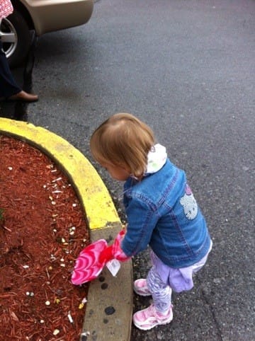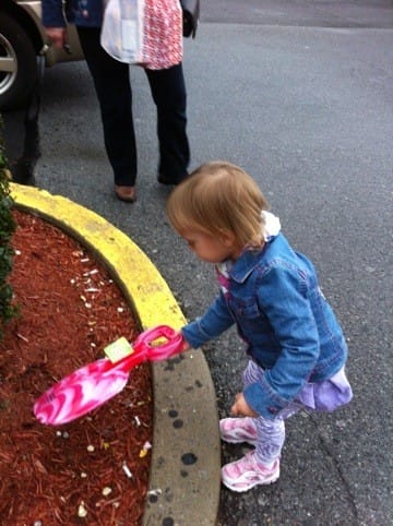 This shovel was only a dollar at Target, so Grammy bought it for me. I put it to use right away… In the mulch in Target’s parking lot!