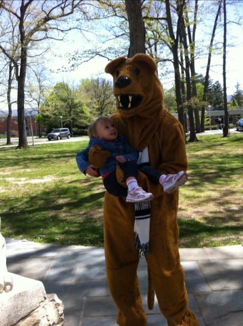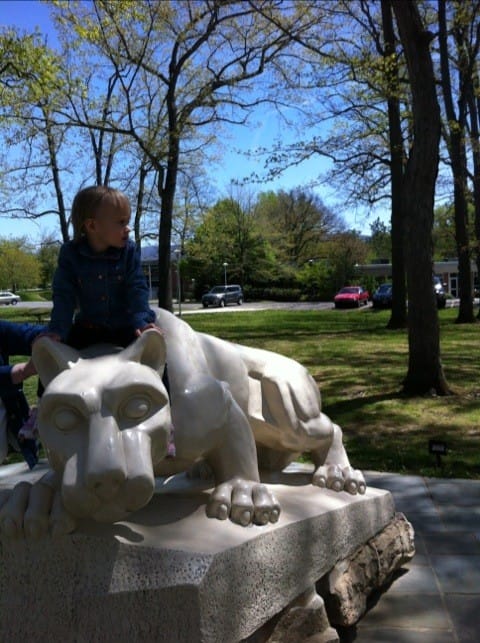 While visiting the campus, I got my picture taken on the statue of the Nittany Lion…