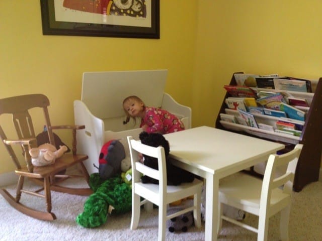 We moved all my stuff into one corner. It’s my little space. Of course I consider the whole house my space. Well, except for the basement. It’s spooky, dad can have that.