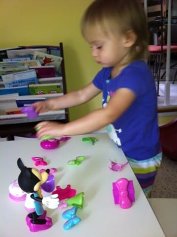 I got lots of cool stuff for my birthday. This morning, mommy opened my Minnie Mouse dress-up set from my cousin Eden. Right now, I’m dressing Minnie up to go shopping.