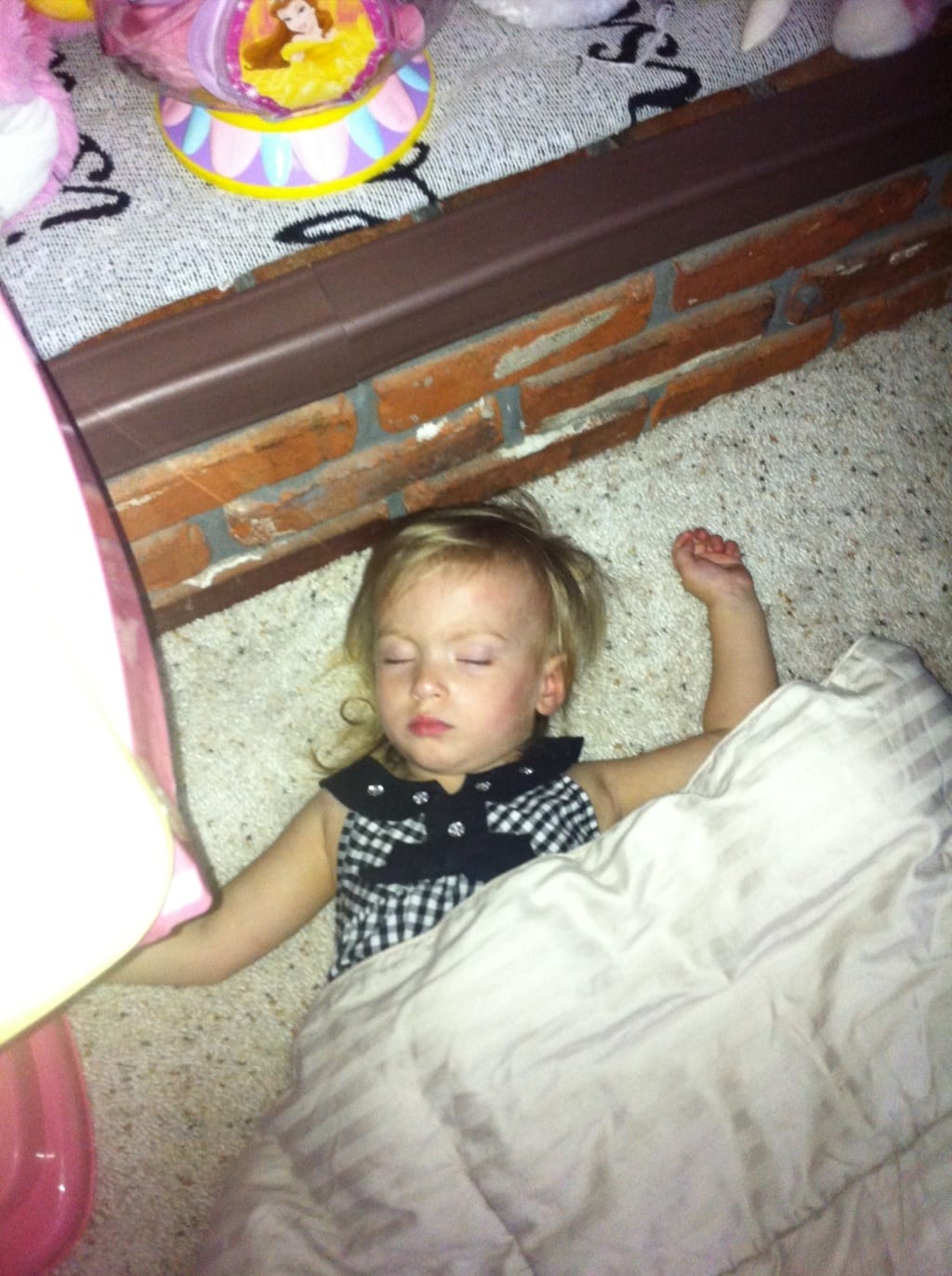 I had a busy day today. Big breakfast for mommy’s birthday this morning, play group at the library, and a visit to daddy at his office. Of course, I refused to take a nap, so mommy took me outside to play. We blew bubbles, drew with chalk, played with Pepper & Turkey (the dogs next door), went for a walk, and met some neighbors we hadn’t met before. After we came back inside, mommy got me cleaned up & changed my diaper, then turned on “Despicable Me.” I just laid down on the floor & fell asleep. Mommy says she wouldn’t believe it if she hadn’t seen it with her own eyes.