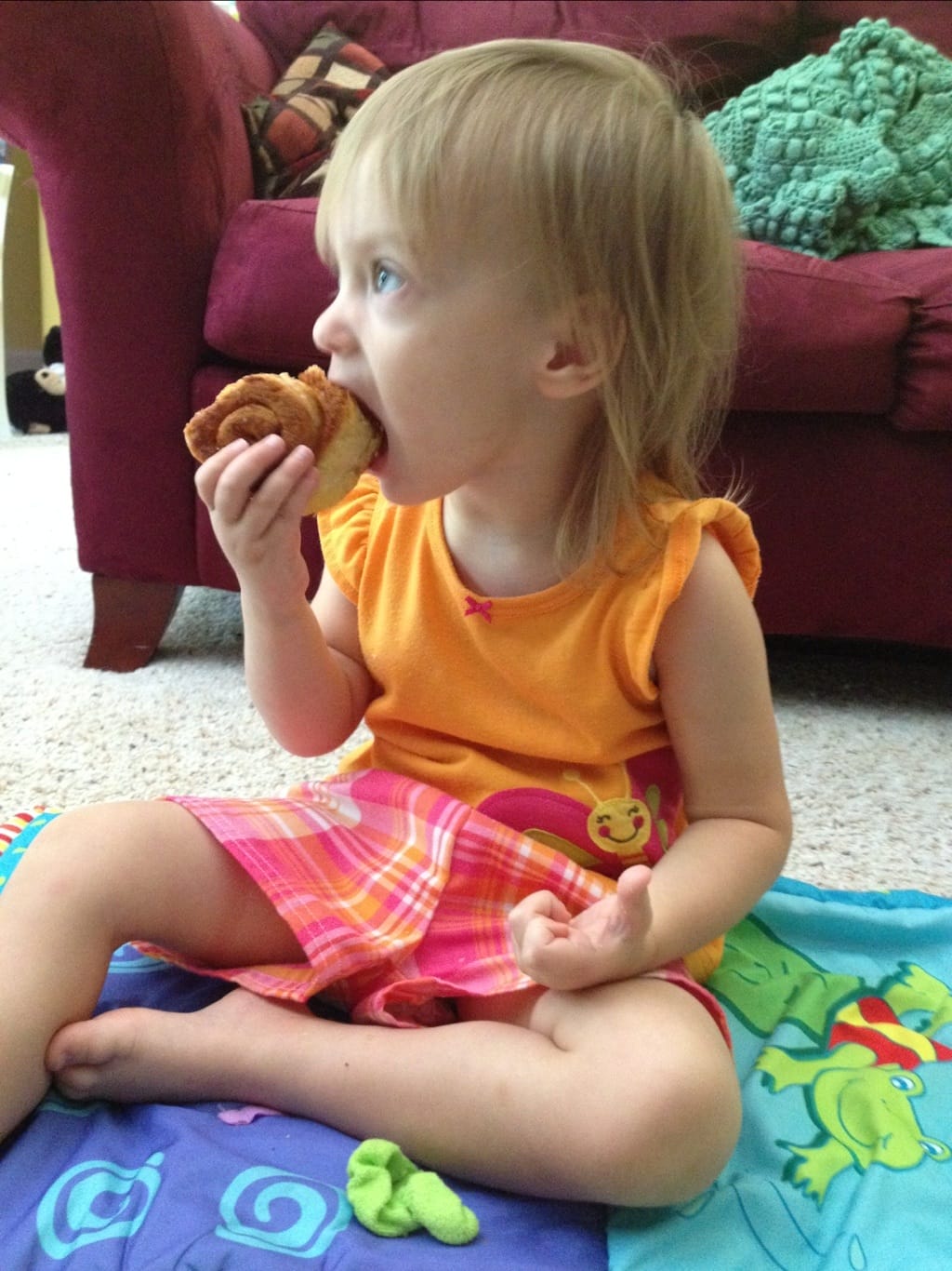 Dad made some store bought cinnamon buns. At first I was like ewe… But then I tried them and…. Yummy!