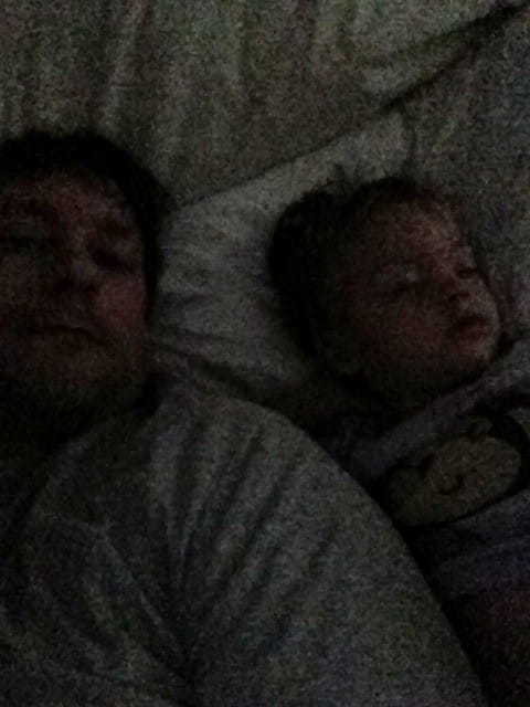 I woke up unhappy. So dad came in to comfort me. But I clung to him. So he brought me to mommy & daddy’s bed. And I fell back asleep. I have my dad trained well.
