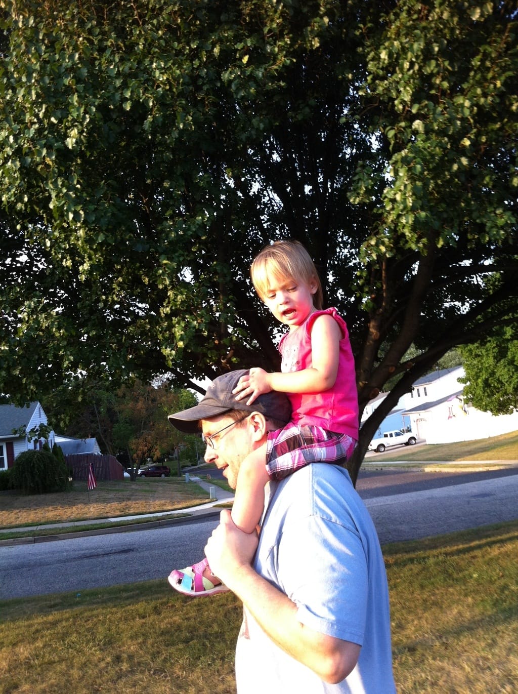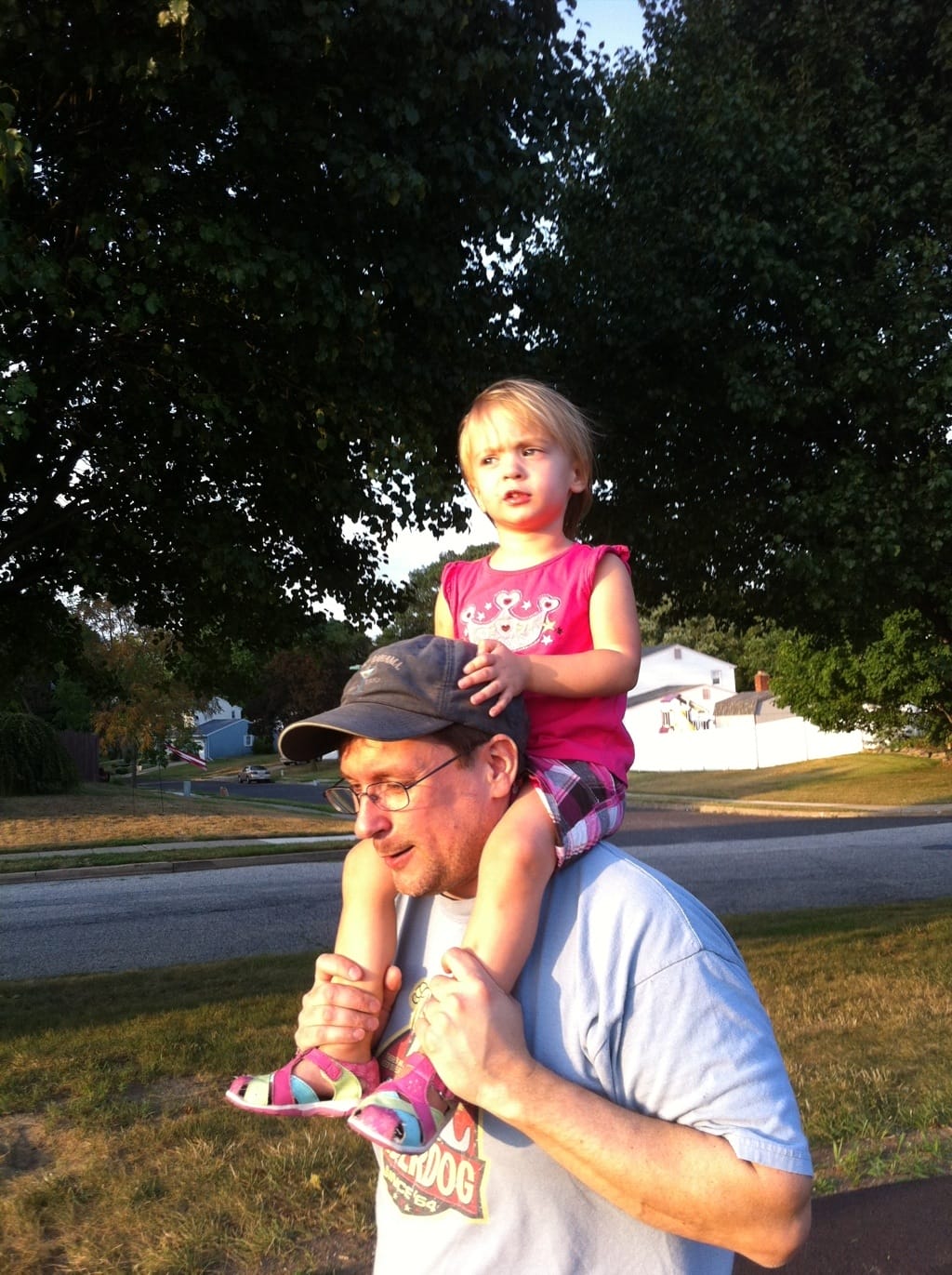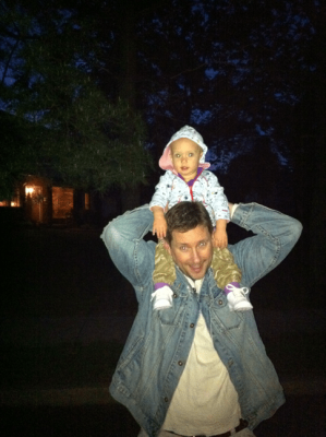 On daddy’s shoulders, of course!