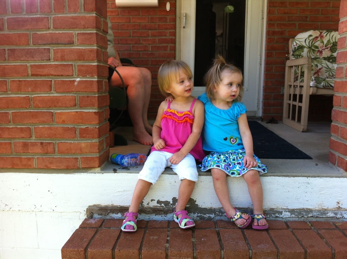 *not long after these pictures were taken, I was giving Eden a goodbye hug. Things went horribly wrong, and we ended up crashing into Grammy’s door. I cut my lip & chin, and Eden hit her head. A dramatic ending to our visit.
