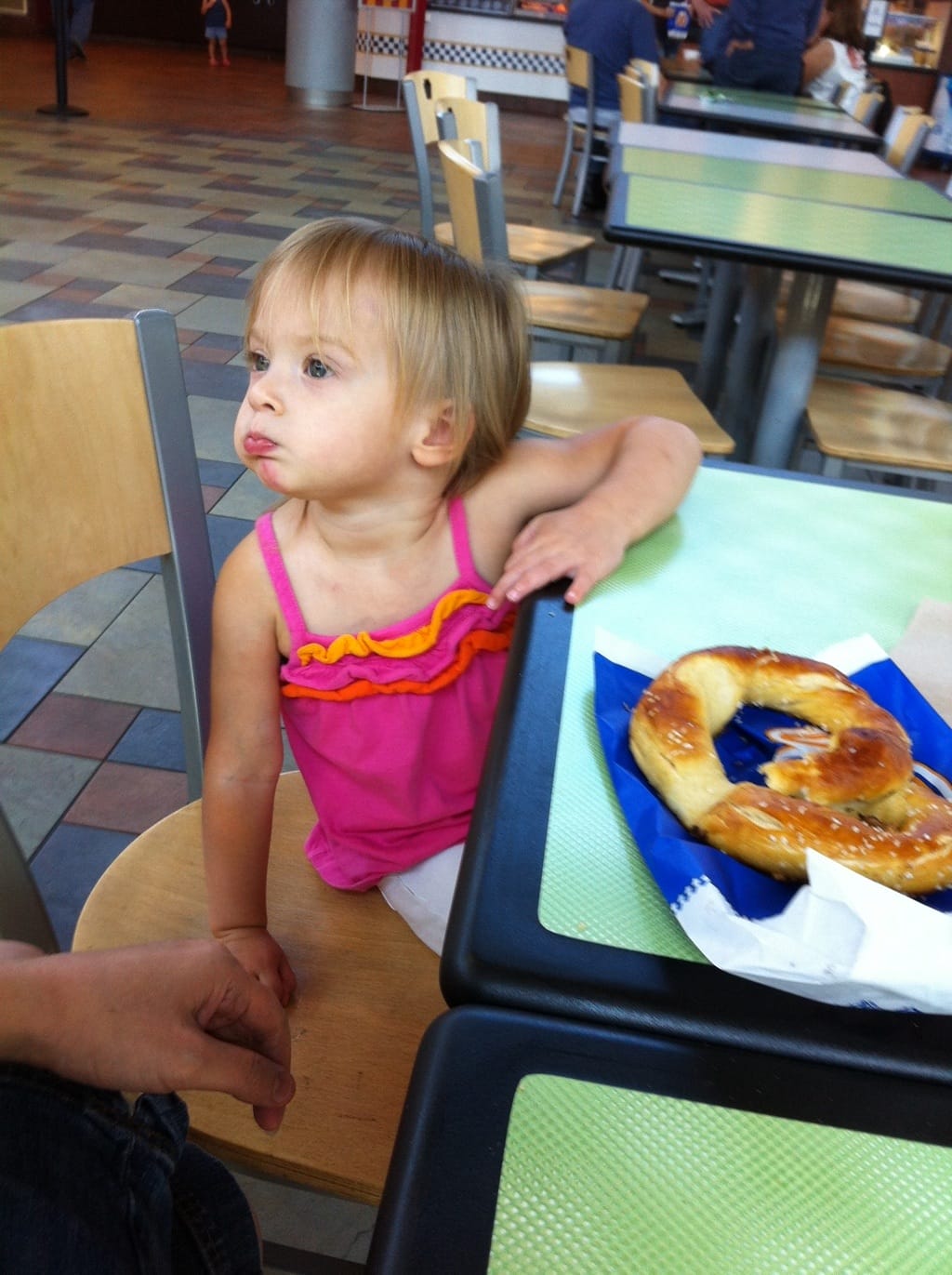 Mommy & I had to make many stops on our way back to New Jersey. This was a rest stop where we shared a pretzel and some lemonade. I was so good on the way to Altoona, and I was an angel all weekend, but the trip home was a tough one for me. Fortunately, after about 12 stops, I finally fell asleep, and mommy got us home in 5 1/2 hours.