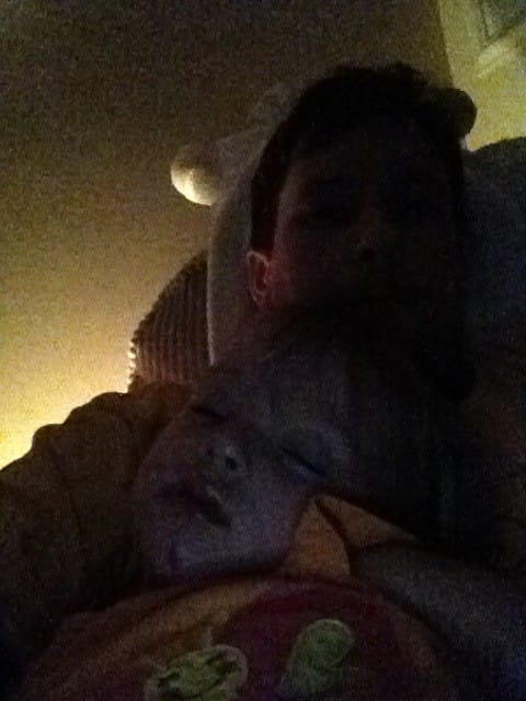 Mommy was sitting with me in my chair so I could breath and sleep. But dad came in and took over because mommy was tired too. When he finally put me in my crib hours later, he slept on the floor so every time I woke up he could wipe my nose. He’s a good dad.