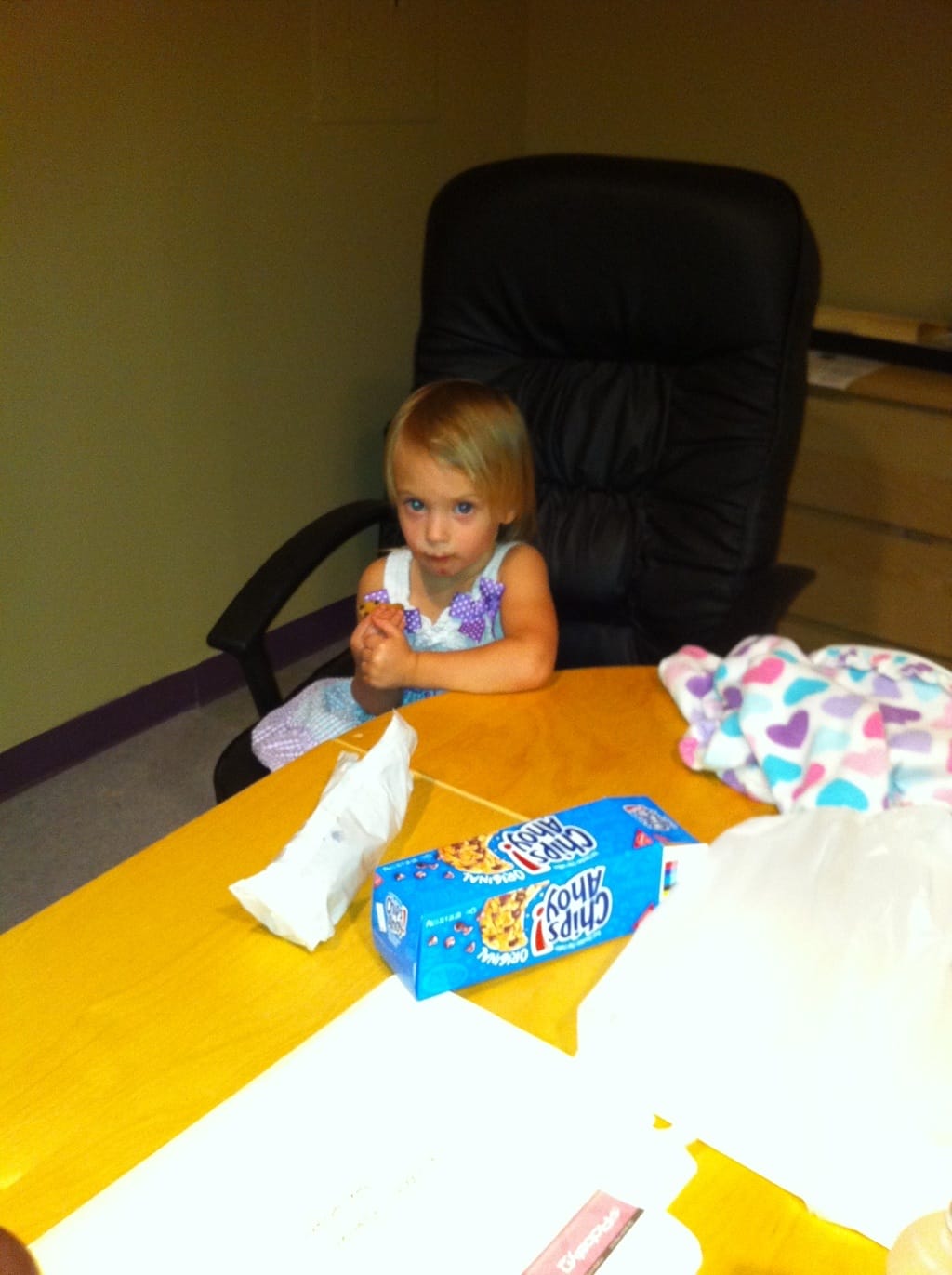 After my major afternoon meltdown (no nap, and a refusal to wear clothes), mommy took me to see daddy. Grandmom was visiting daddy, too. I convinced her to take me to the store across the street to get cookies.
