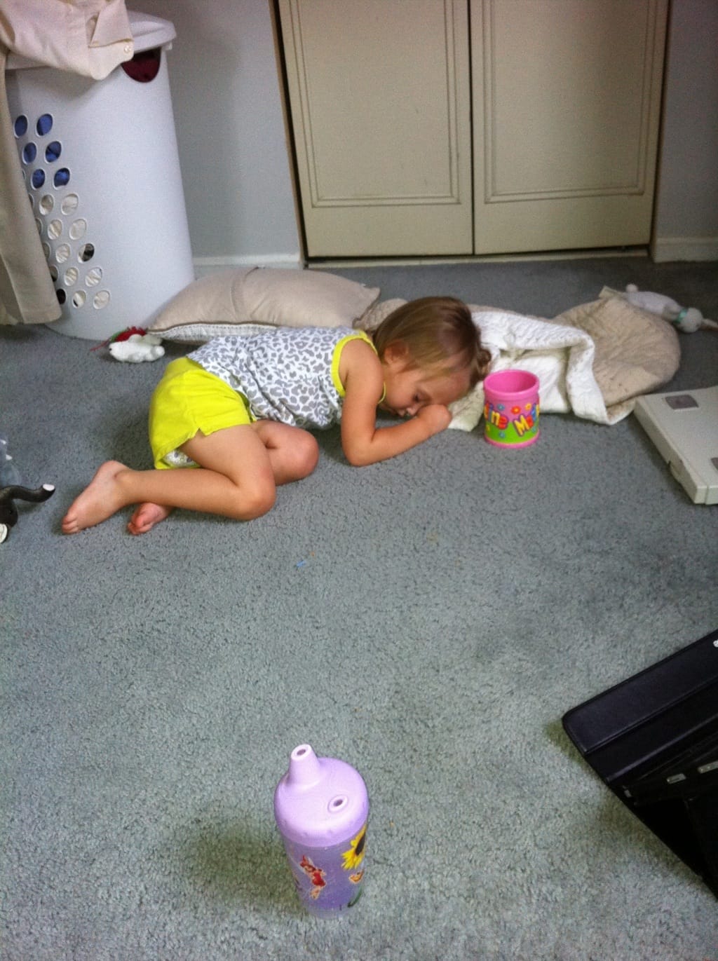 I didn’t want to take a nap, but mommy had to do some work on her computer. So she set me up in her office with Teddy Grahams, water, and Hercules on the iPad. I also had my pillow & quilt (just in case). Mommy looked away for a few minutes, and when she looked back, I was asleep. I really wasn’t sleepy – I was just trying to help her out.
