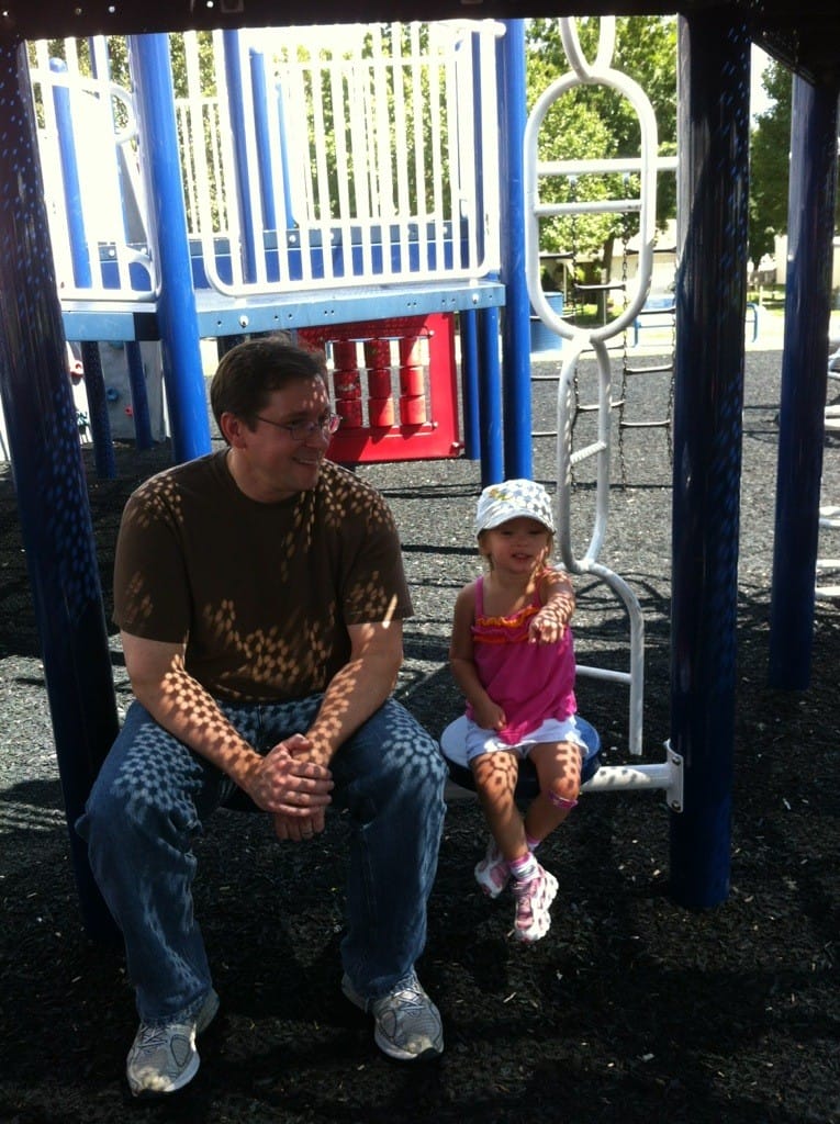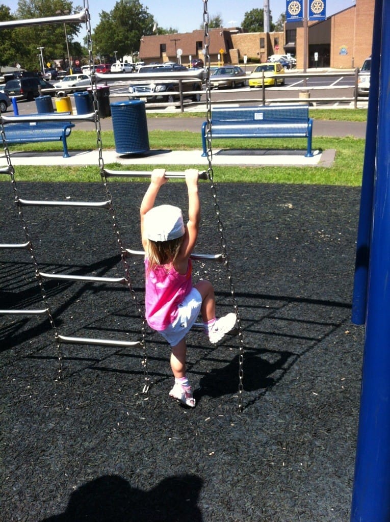 Mommy and I went for a walk up to daddy’s office (she walked and pushed me in my trike). Then daddy came out and walked with us to the park! It was fun to go to the park together!
