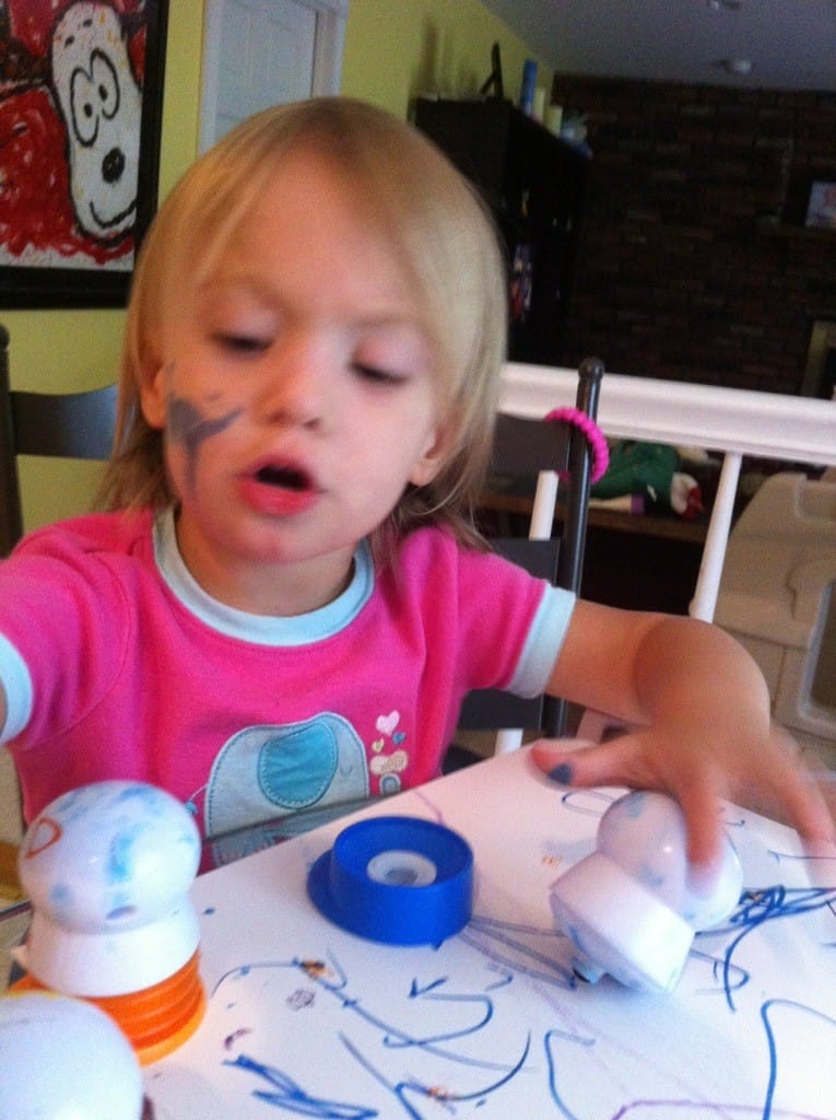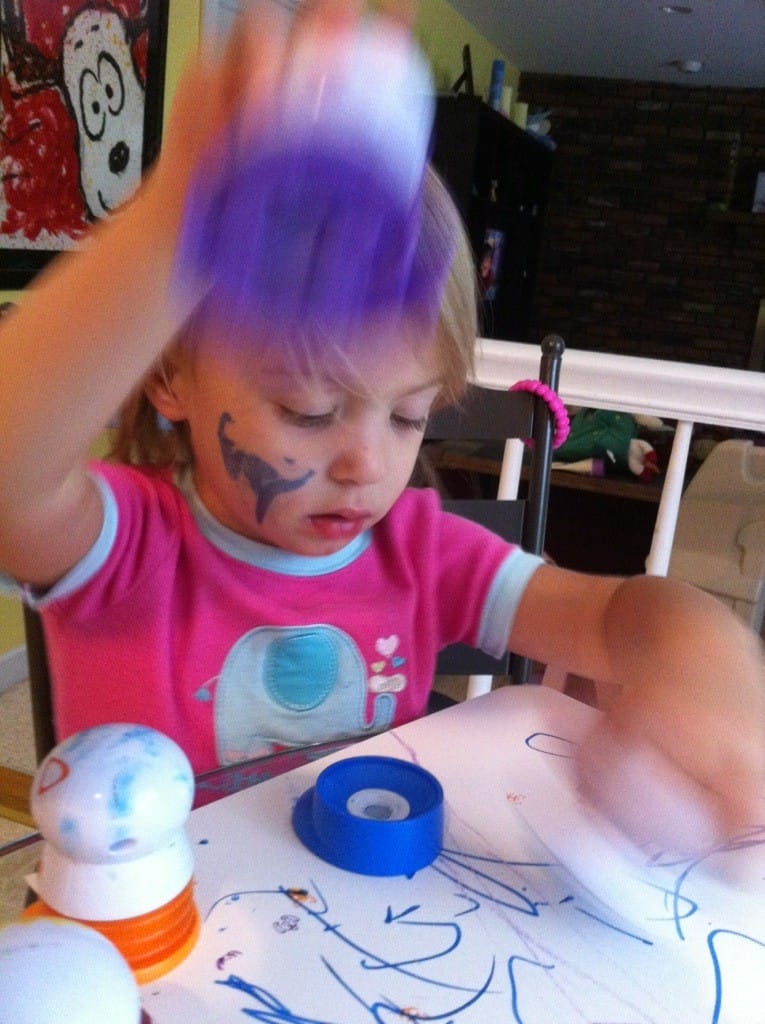 I’m not content to just sit quietly & draw on the paper. I must make noise and wild hand gestures, and I always end up drawing on some part(s) of my body.