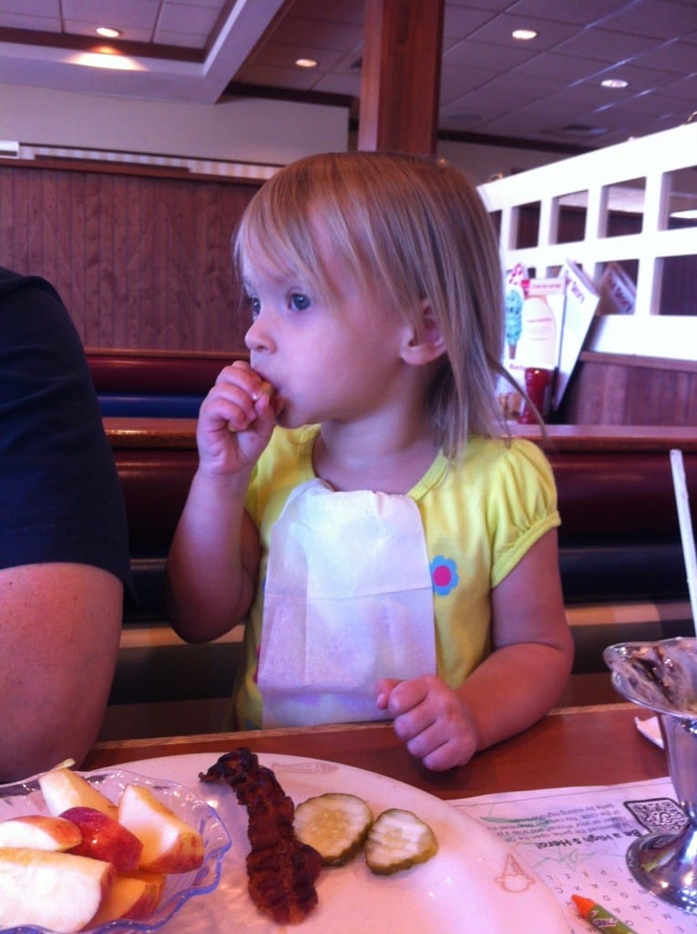 Mommy decided we should take daddy out for lunch. She was thinking we’d go to the pizza place, but I decided we should go to Friendly’s. I love it here.