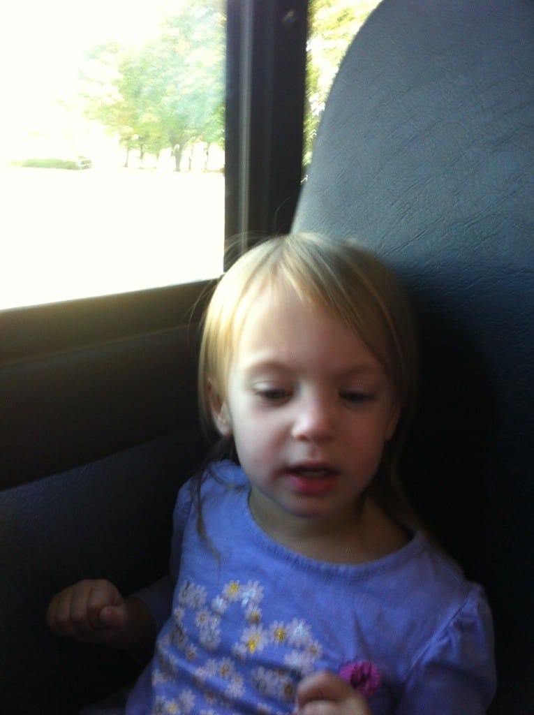 The shuttle was a school bus, and mommy had an awful time getting my stroller on with us. But I had a good time – it was my first bus ride!