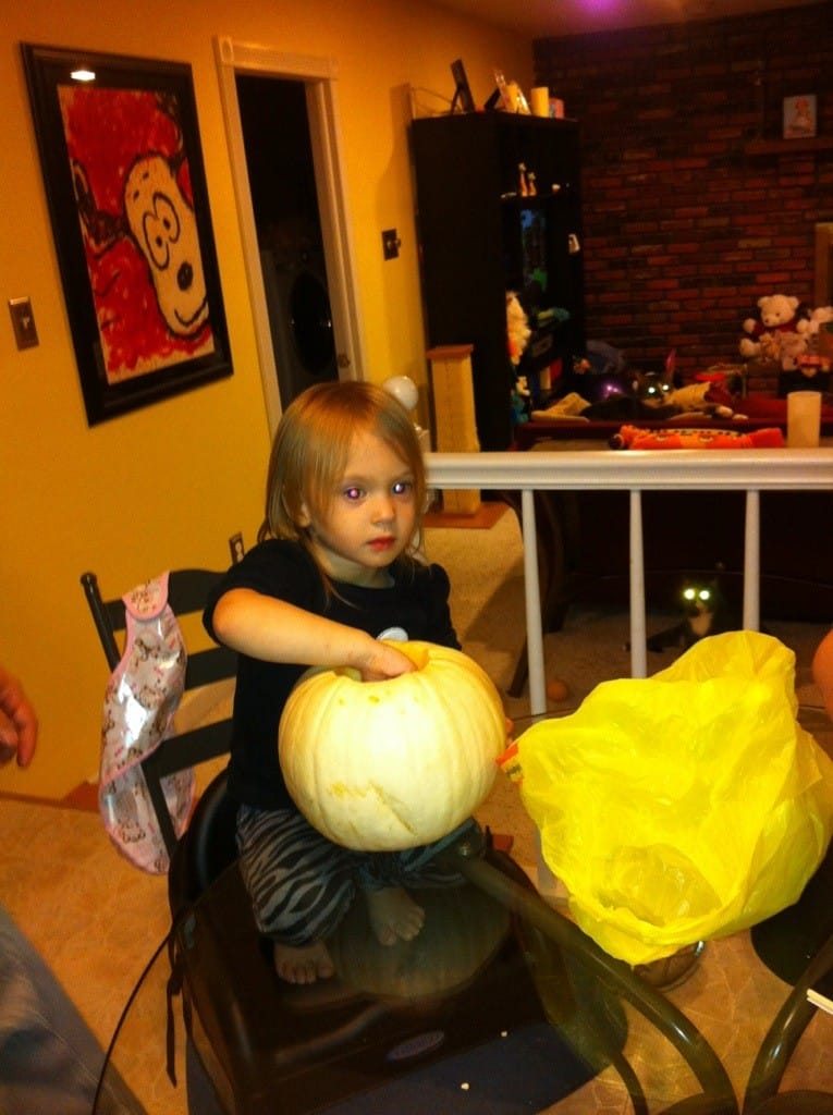 Daddy, mommy, and Grammy helped me carve my pumpkin. It’s beautiful.