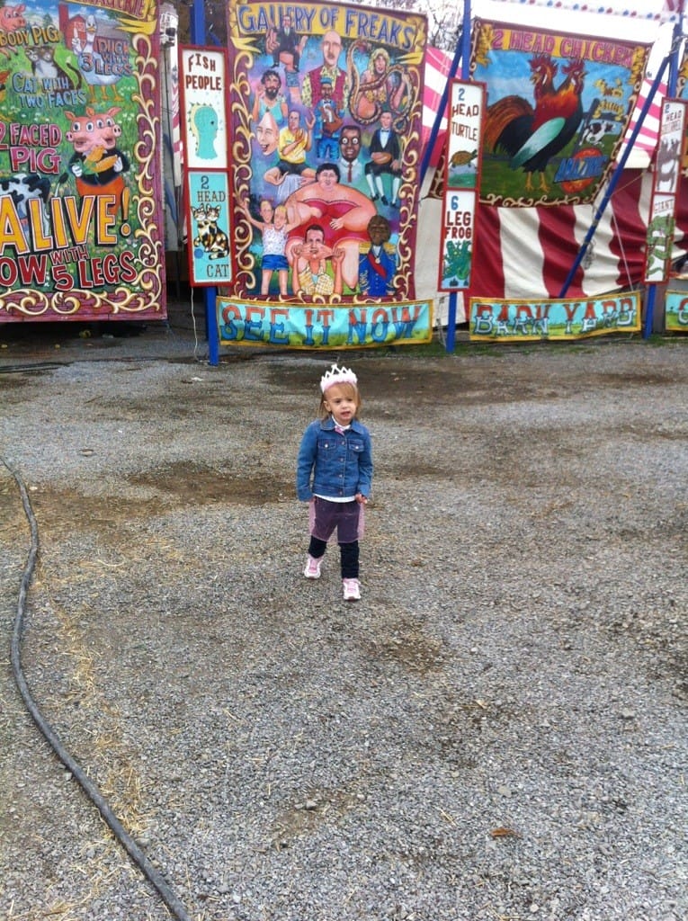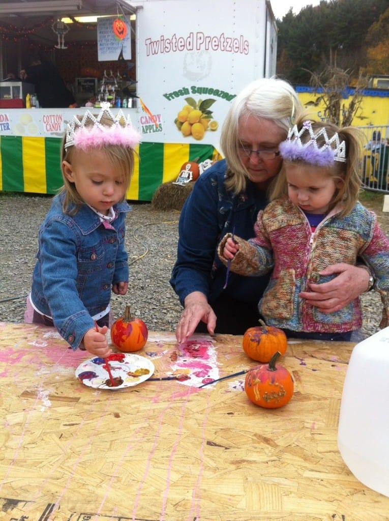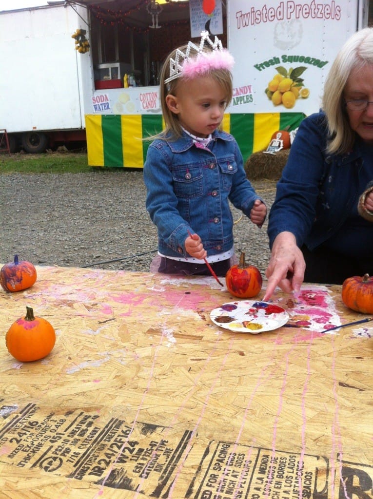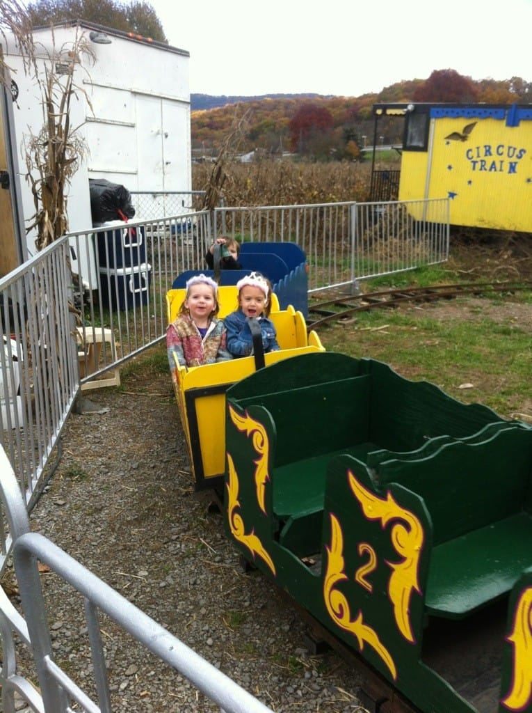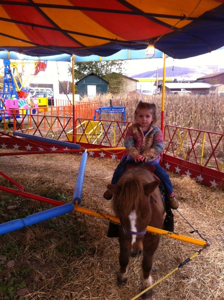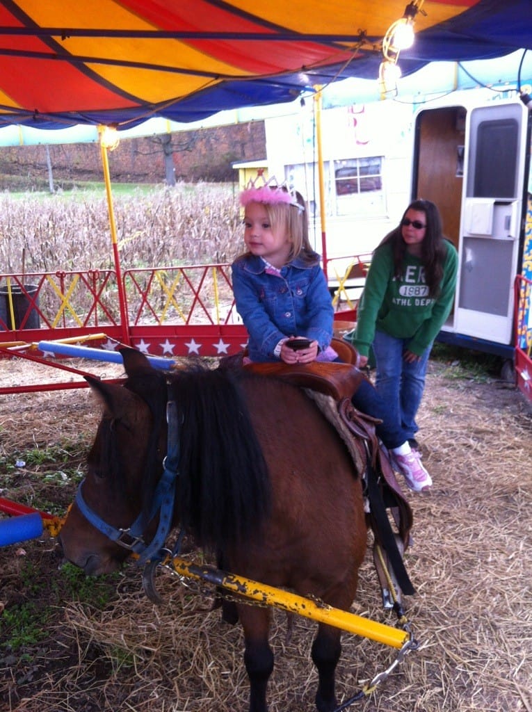 We went to Leighty’s Farm Market, because they had some fun stuff to do. Aunt Amber & Uncle Jason got us princess crowns and skirts, then we rode ponies, went through a corn maze, painted pumpkins, rode a circus train, went through a petting zoo, and rode on swings. It was a fun day!