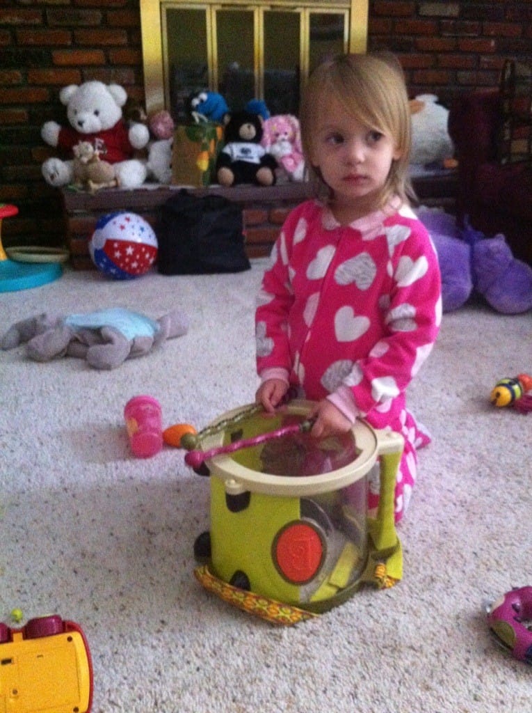 Mommy & I watched a cartoon (either Team Umizoomi or Bubble guppies) about rock music. I got out my drum & have been keeping a good beat.