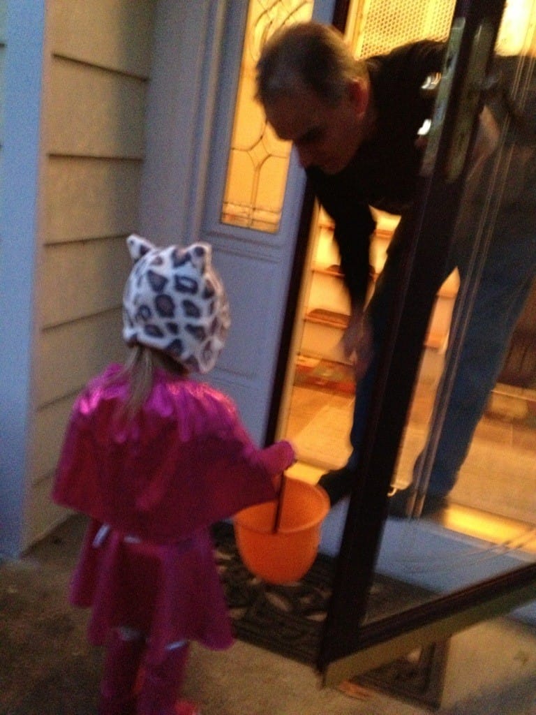 I went trick or treating with mommy and daddy. It was cold, but I didn’t mind.