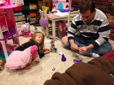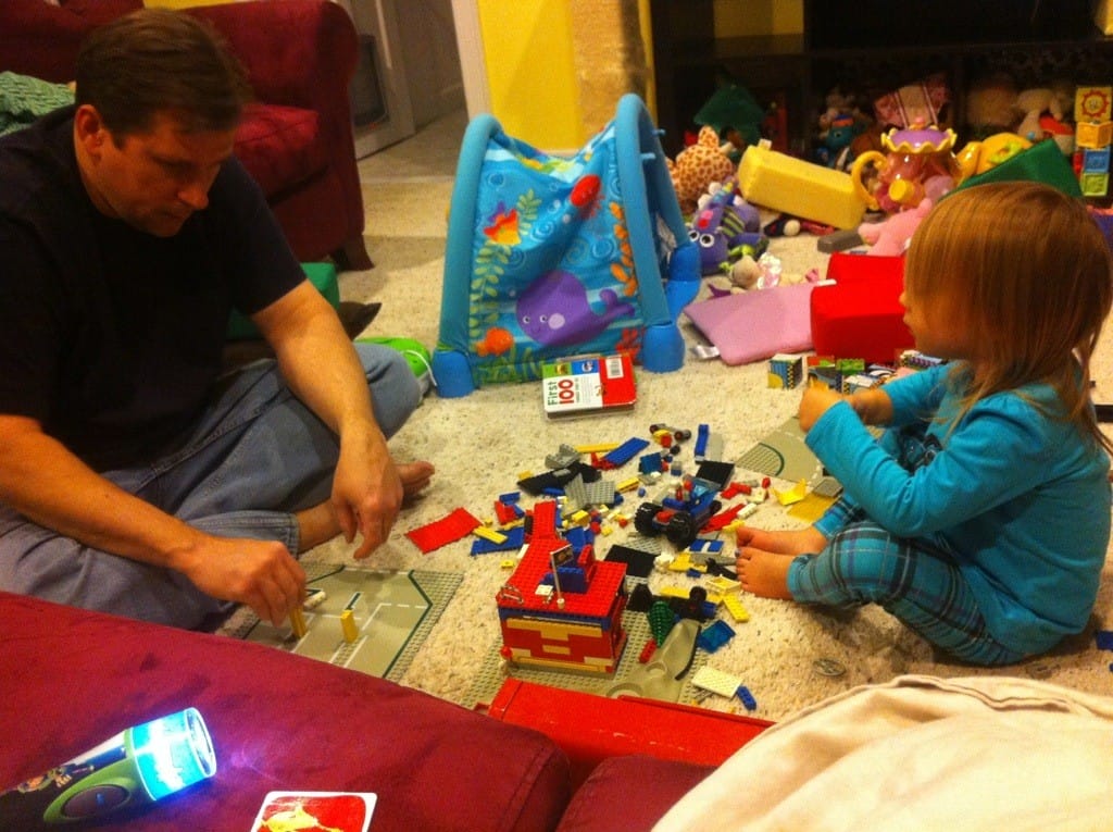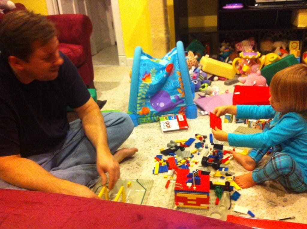 Daddy must really love me, because he got his prized Legos out of the basement so we could play together. Mommy thinks this is adorable, but wishes he had put some of my other toys away first.