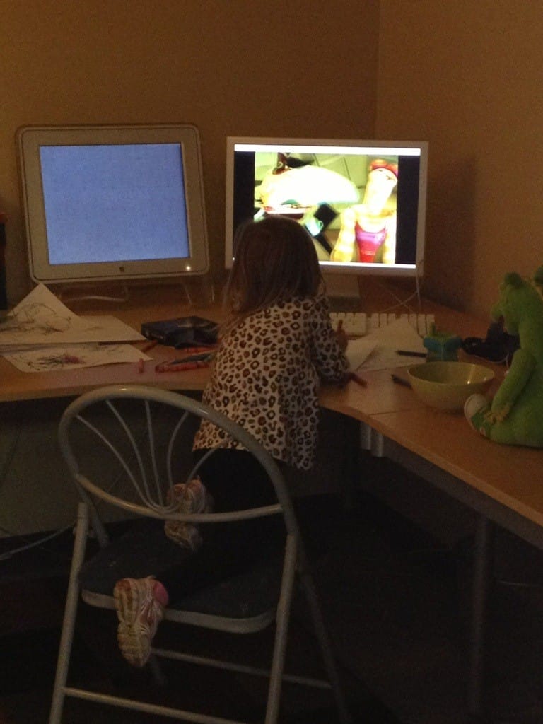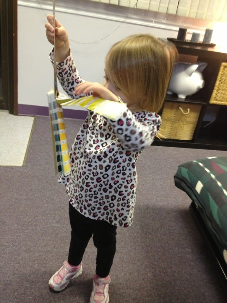 I’ve been shopping with mommy all day. I stopped by dad’s office while mom went home to unload. We’re making Pantone book birds and watching movies (in my office).