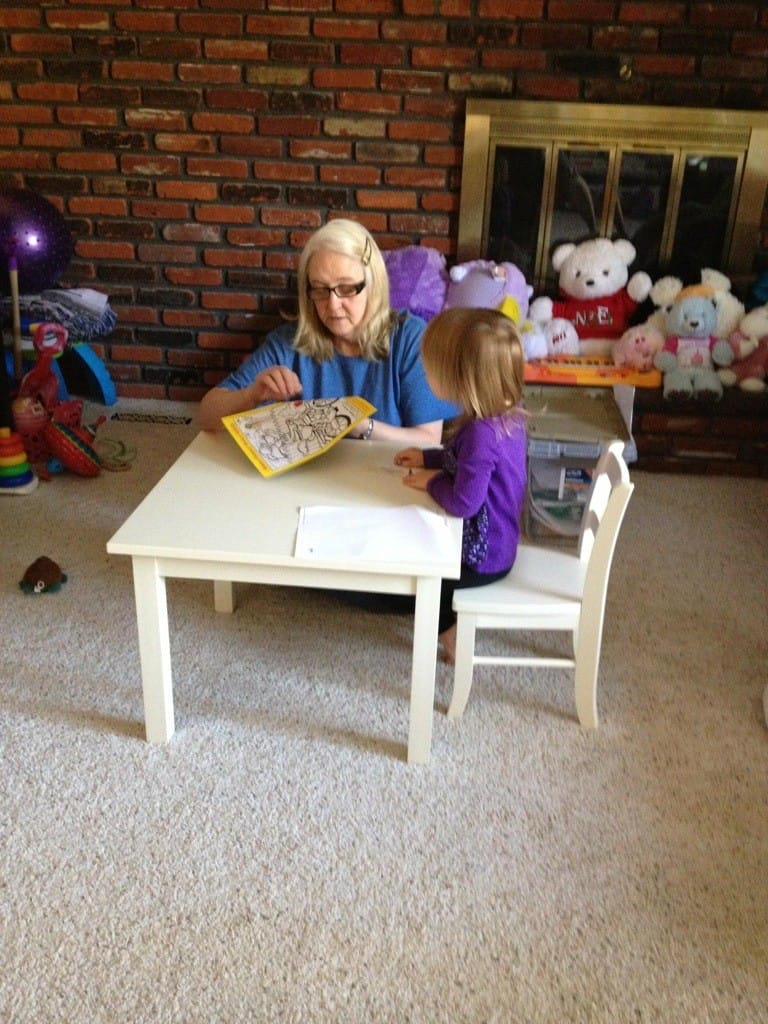 I’m playing stickers and drawing with Grammy. It’s fun to have her here she should come visit more often.