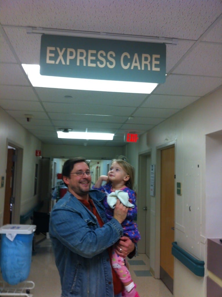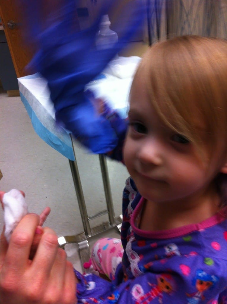 I was sitting on mommy’s lap in her office, and I grabbed an exacto knife that she didn’t realize was on her desk. I cut my finger pretty bad. Mommy almost passed out, and daddy rushed home.