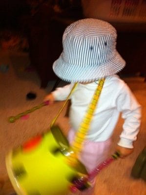Mommy put on “The Little Drummer Boy” for me to watch. It prompted me to get my own drums out & play a tune.