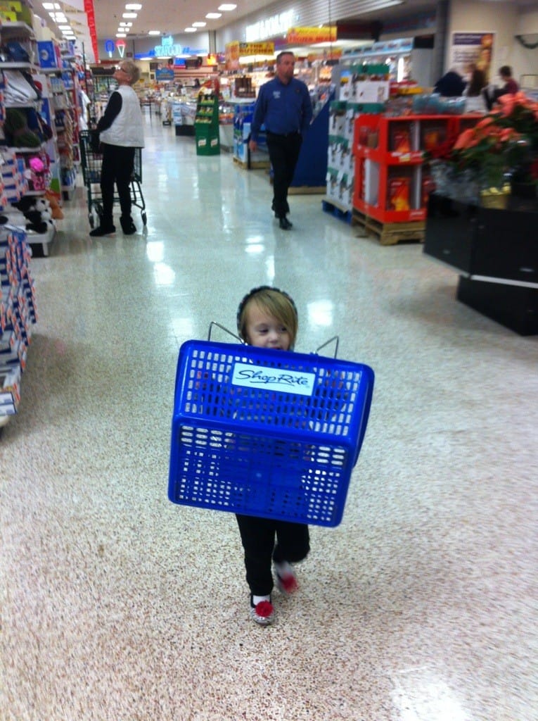 We had to stop at the store. I was helpful for a little while, carrying the basket for mommy. Then, I started misbehaving and we had to leave. 🙁