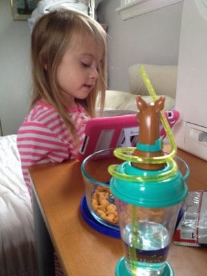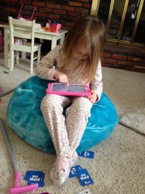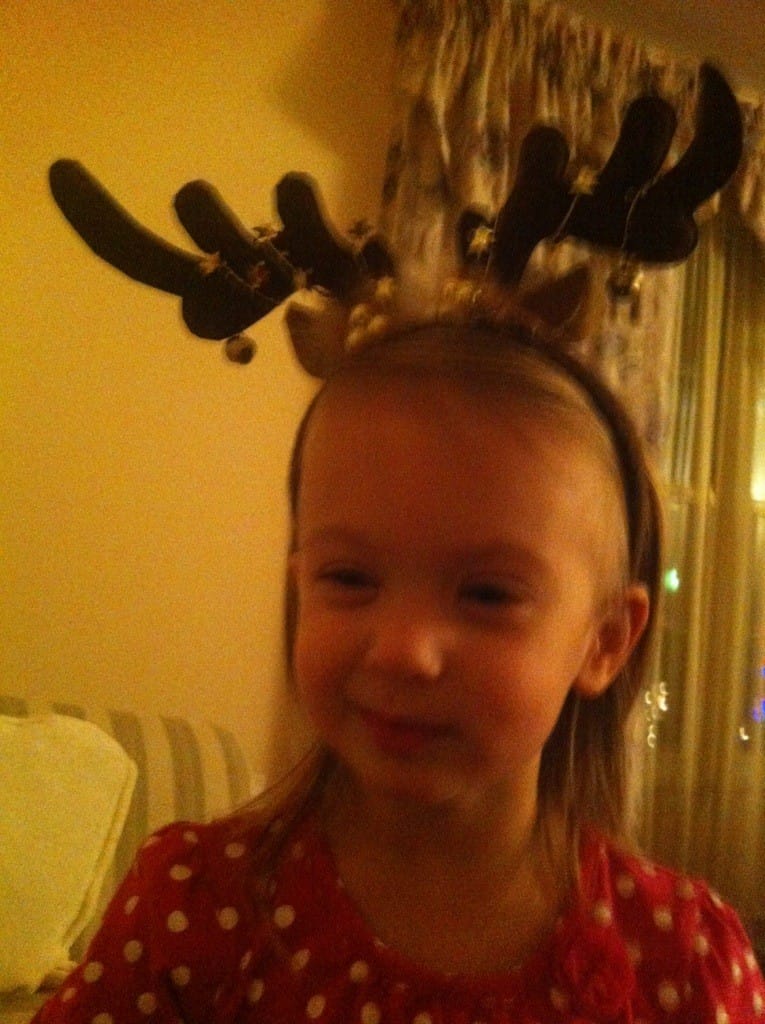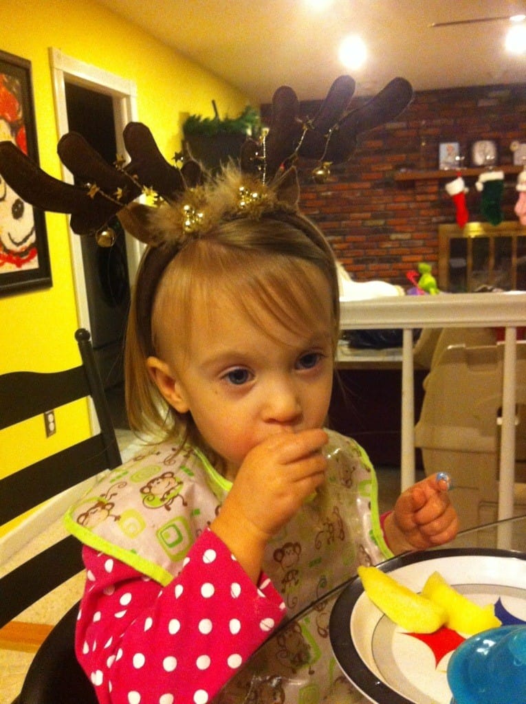 Mommy got some stuff out to try to decorate & I found these cool antlers. She didn’t get to do much decorating, but I sure had fun. I even had carrots & apples for dinner – reindeer food!