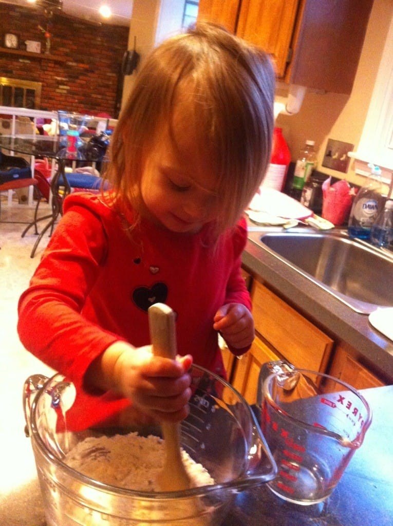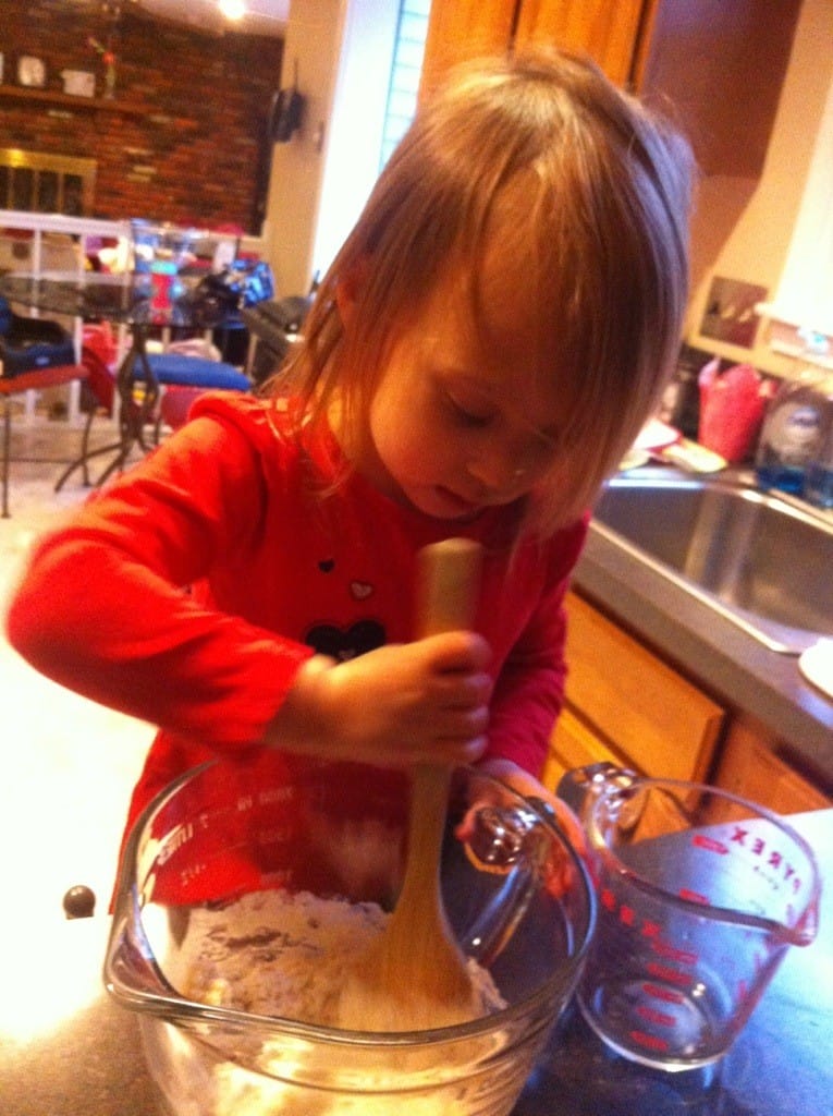 I thought I had broken mommy, but she must really love me, because she’s letting me bake blueberry muffins.