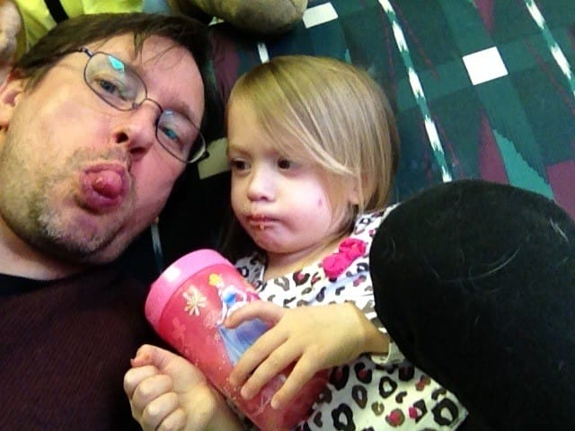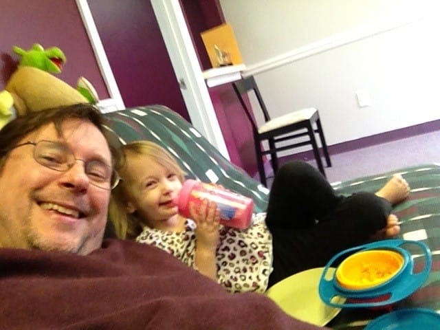 I’m here with mommy so she can work with our accountant. But there’s a few kinks in the system so they’re using dad’s computer. So he can’t do anything… except play with me.