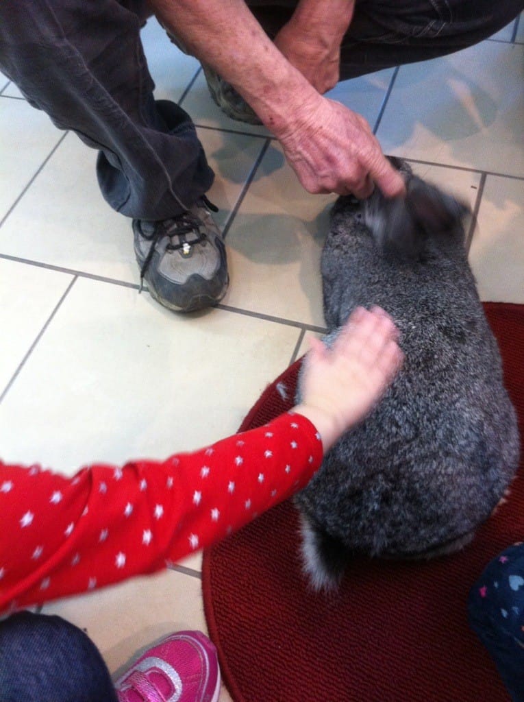 But the best thing of all was… I got to pet bunnies. A gray bunny named Gary, and a black bunny named Batman. Mommy even got to hold Gary. Bunnies are soft and fun.