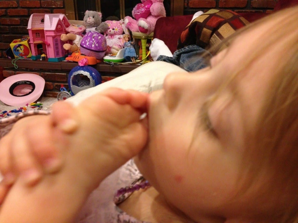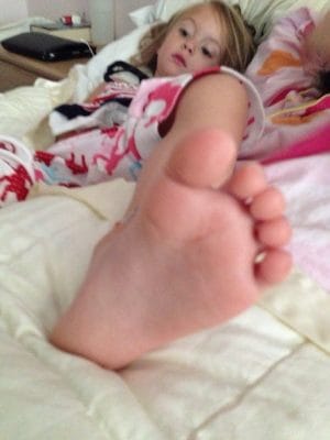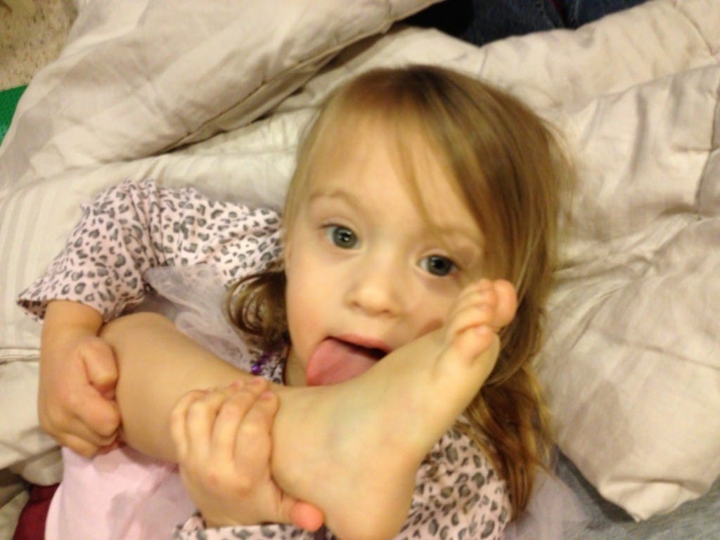 I’m skeeving dad out by licking my foot. My dirty, icky foot that played at the park for hours.