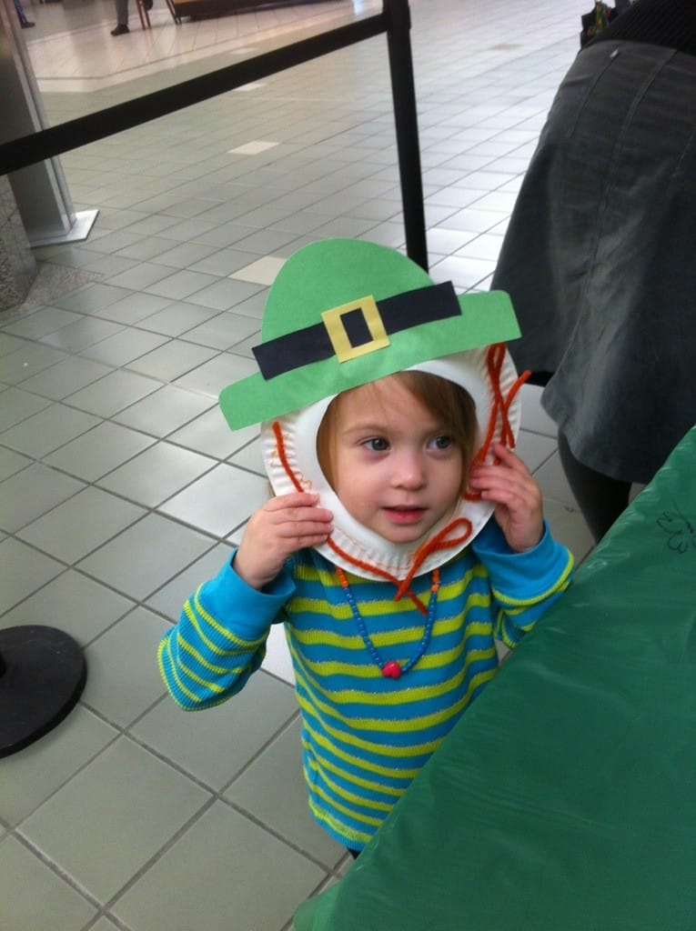 We went to the Just Mom & Me event at Moorestown Mall today. It had a St. Paddy’s Day theme, so I got to make a leprechaun mask.