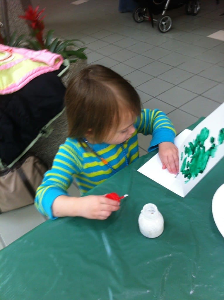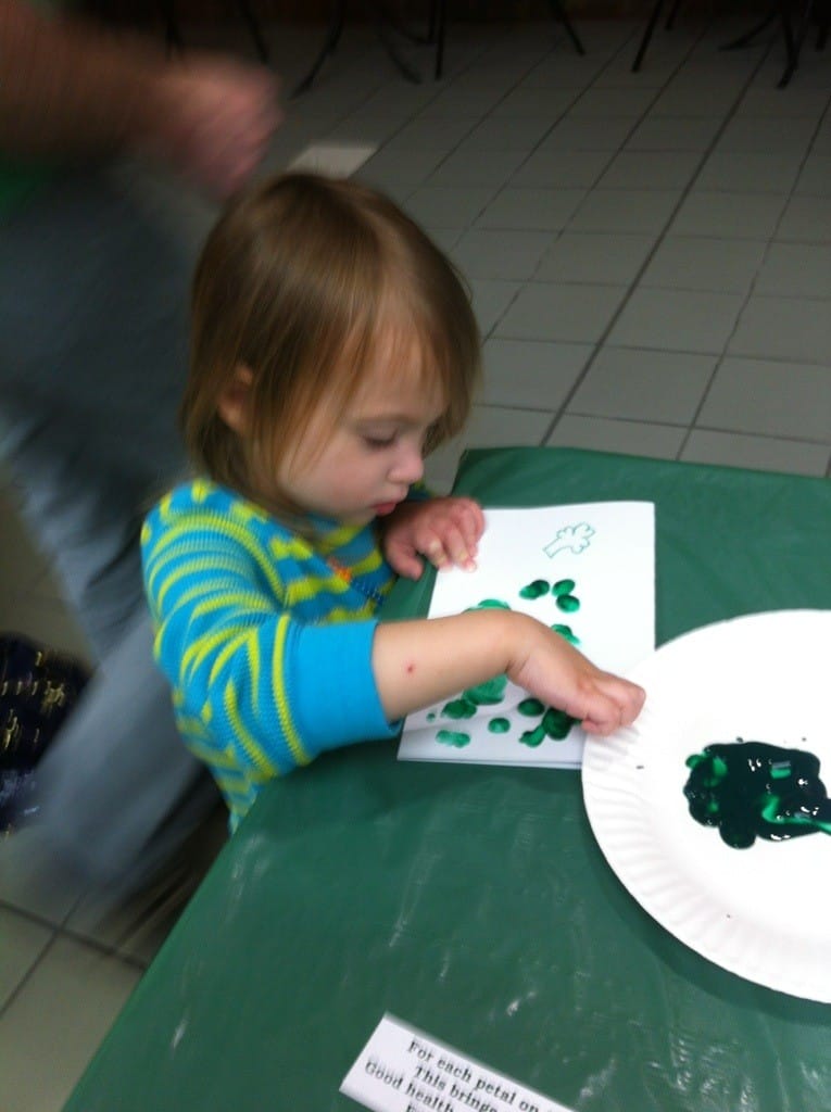 Then I used green finger paint to make a St. Patrick’s Day card. It was really messy.