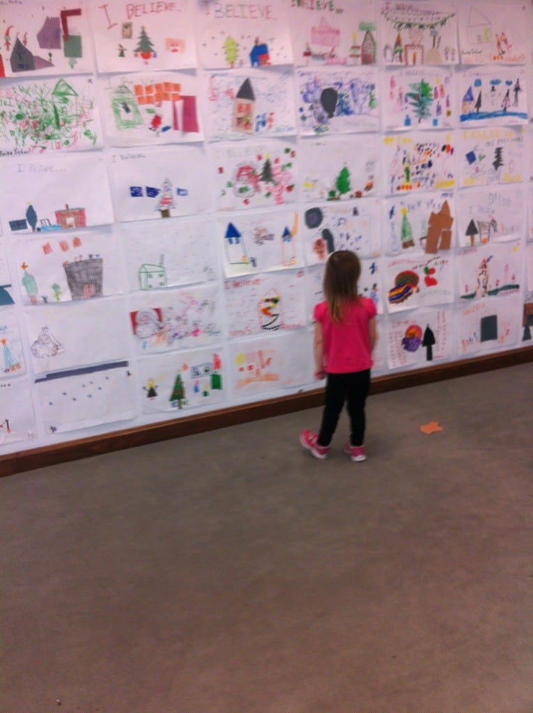 I made mommy take me up to the top floor at Macy’s, because I wanted to ride the escalator. When we got up there, we saw lots & lots of pictures made by kids. I liked looking at them all!