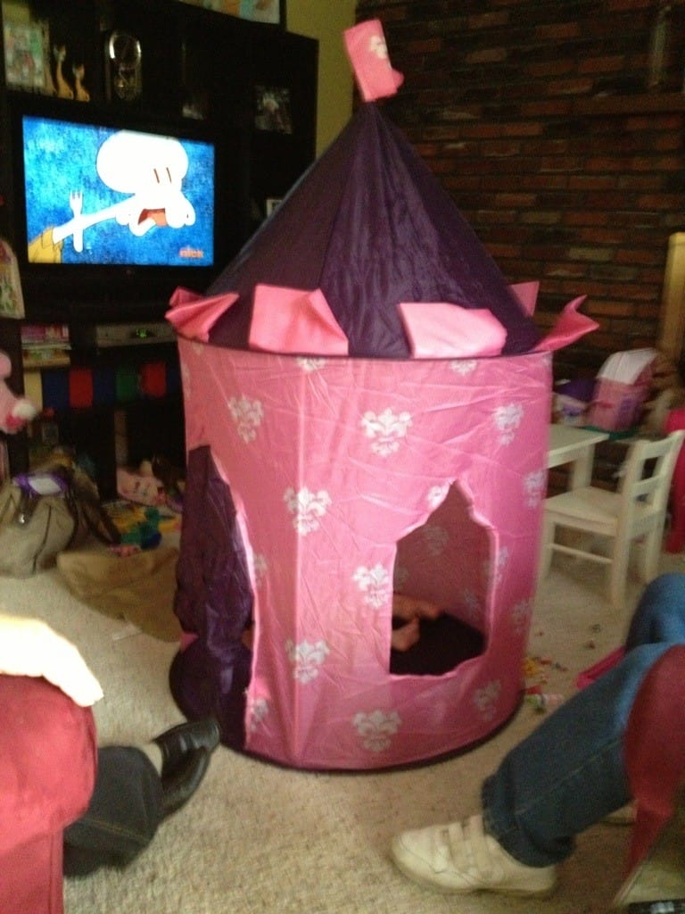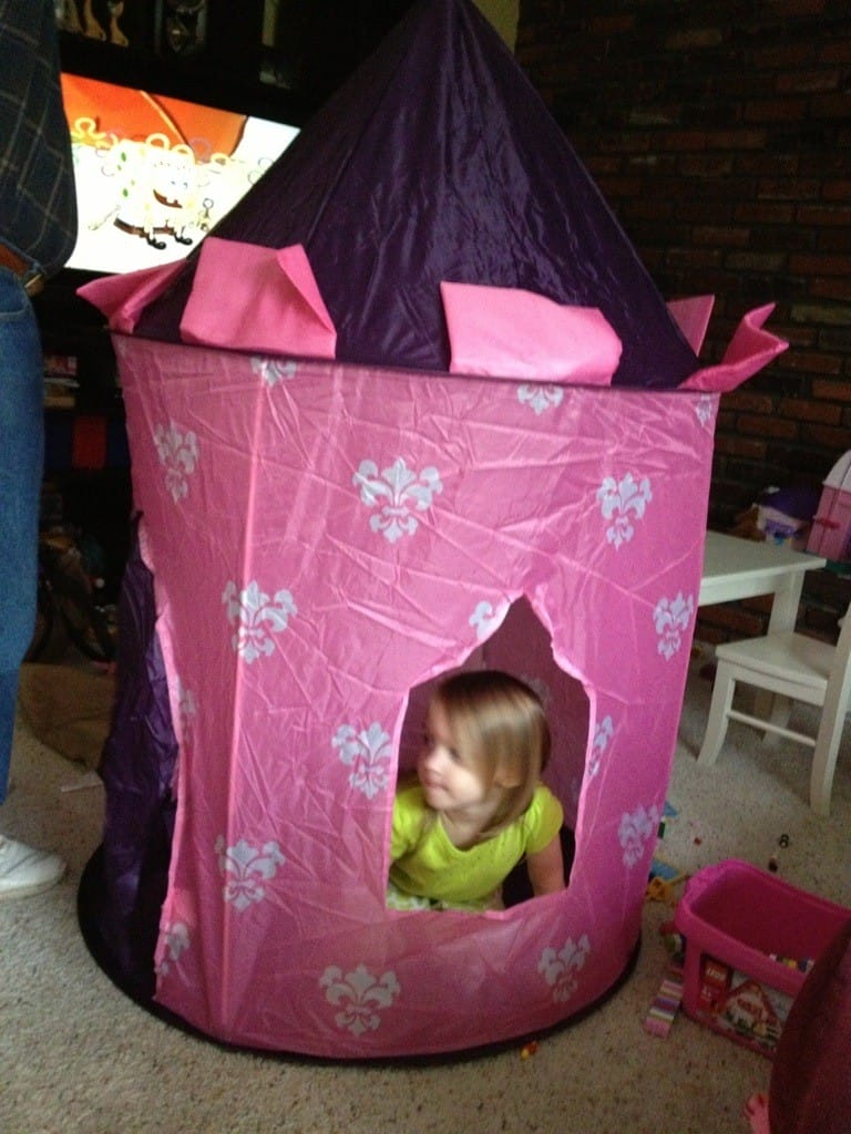 Grandmom and poppy came to visit and they brought me a present. I now have a princess castle tent. It’s fun. I love it.