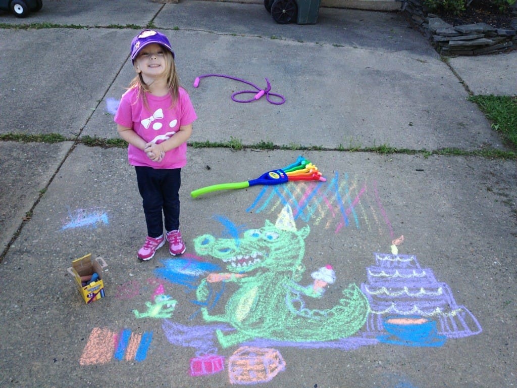 Daddy and I drew with chalk