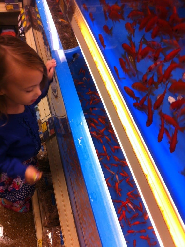 Checked out the chinchillas & the fishes at PETsMART – I also looked at the kitty cats, but mommy says we have too many of them already.