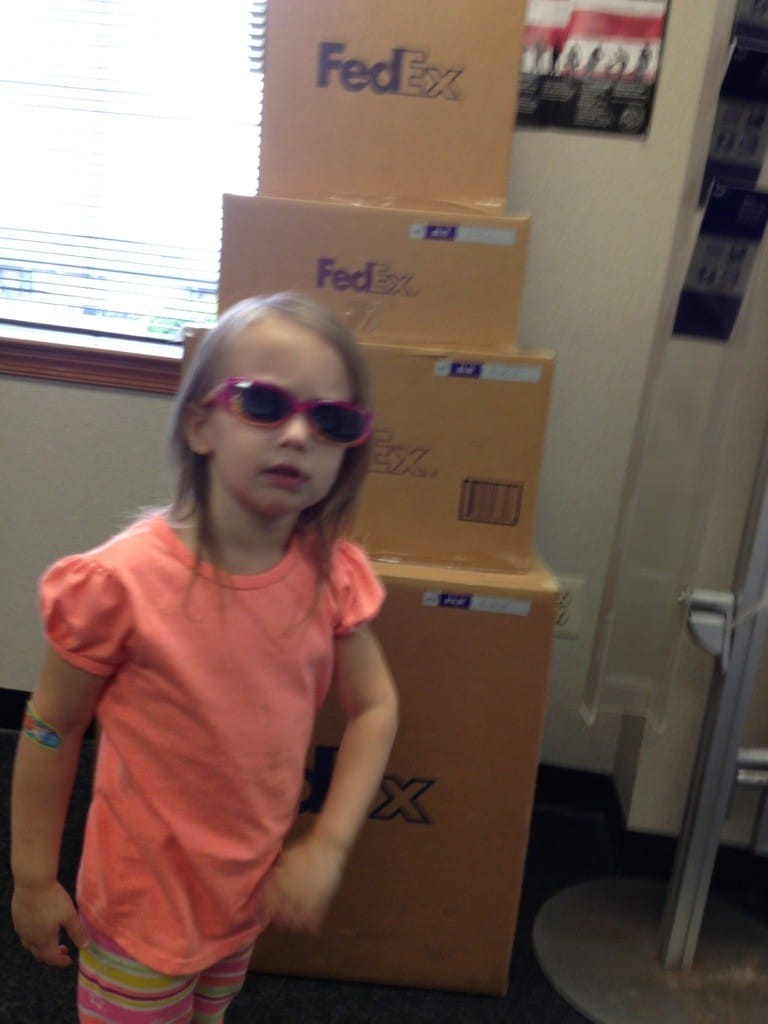 I went with daddy to FedEx. And I carried the box in cause I’m a delivery girl.