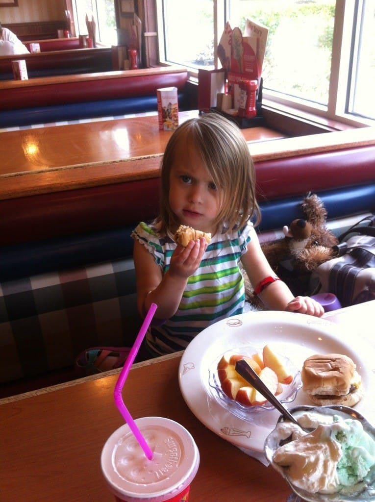 I had a rough morning at Lab Corp trying to get blood drawn. It was pinchy & awful, and she never did get enough blood. So I have to go back tomorrow. Mommy brought me to Friendly’s to make me feel better, but I’m still cranky.