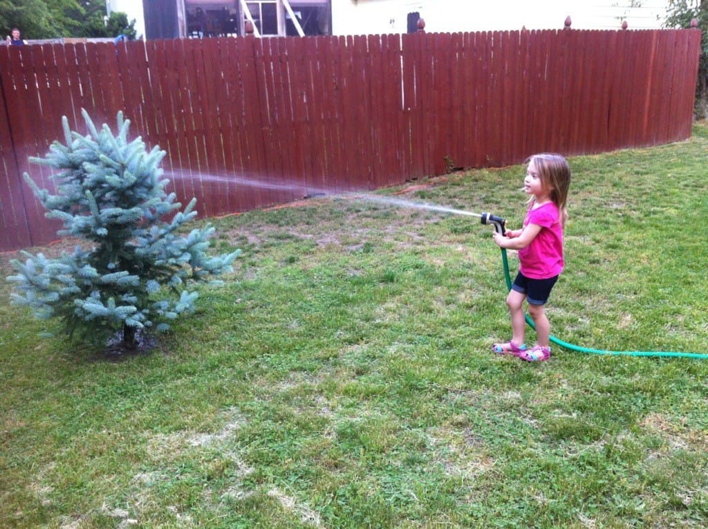 Mommy & I had a busy day, gardening & washing the car. Then we went to water Ernie. He has lots of new growth & looks great!