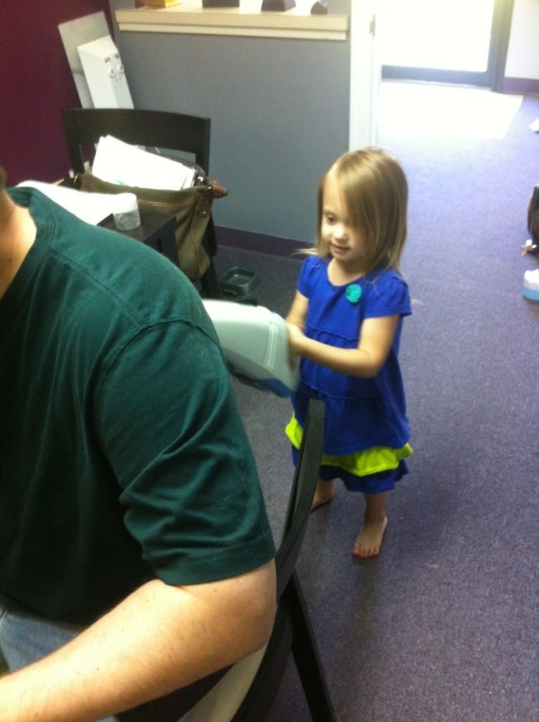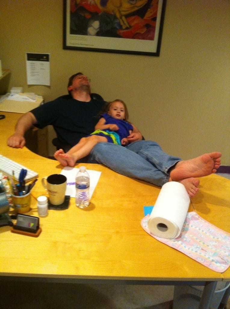 Hung out with mommy & daddy at the office after school today. I tried to vacuum daddy after he fell asleep on Ms. B’s futon & got covered in cat hair (it didn’t work), then I tried to take a nap with him in his chair.