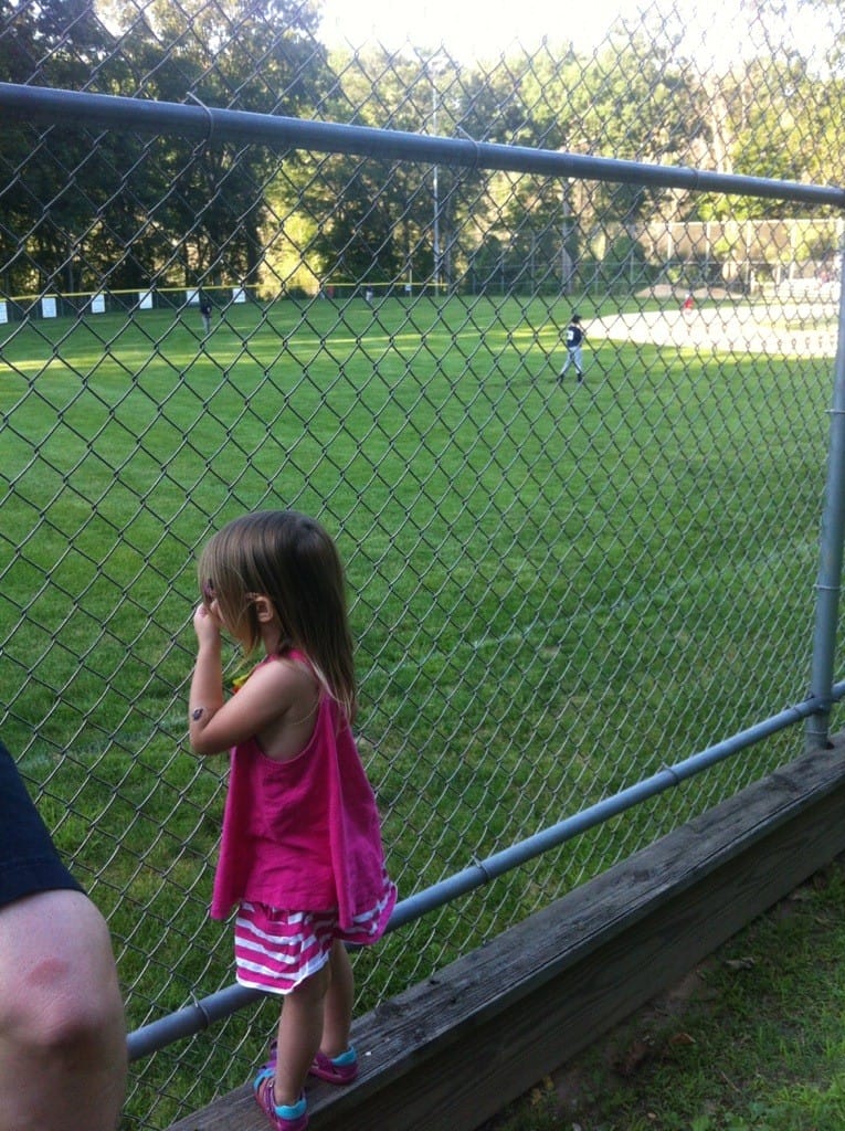 It’s a beautiful night, so mommy & daddy & I walked down to the ball field and watched the game for a little while. They even tried to explain baseball to me – though I don’t think they know what they’re talking about!